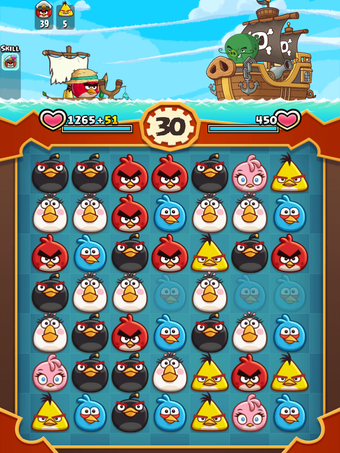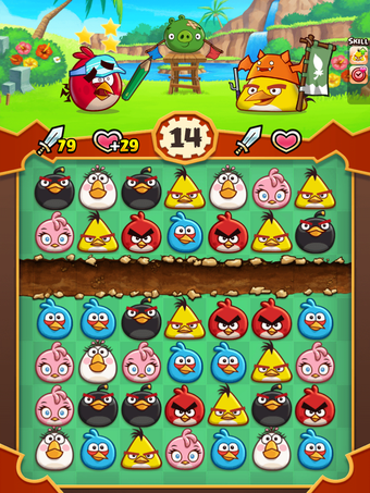 During each round, every set of three blocks you create increases your strength. Plus, if you make a chain of more than three blocks, you can unleash additional abilities. These include blowing up areas of the grid with black birds, and clearing whole lines with the yellow bird. When the time expires, your power is unleashed on your opponent.